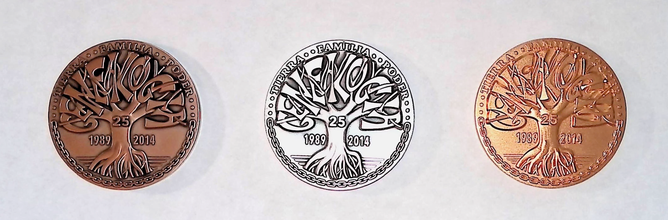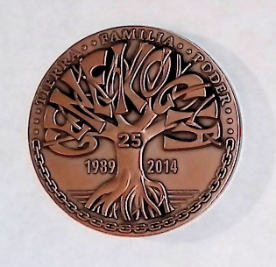 La medalla conmemorativa de los 25 años de fundación y funcionamiento de la SPG. La medalla de 2 pulgadas de diámetro está hecha de tres metales. Los tres metales son bronce, enchape de plata y enchape de oro y los tres medallas son incluido en la comprada. Una colección limitada de 100 con cada juego numerado de forma única. El costo de envío incluye seguro.